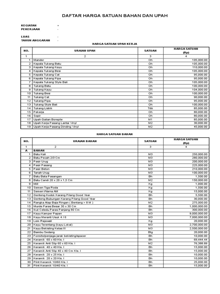 DAFTAR HARGA SATUAN BAHAN DAN UPAH
