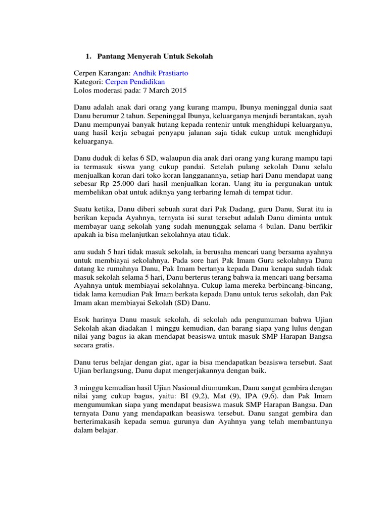 2. Contoh Cerpen Pendidikan Moral "Seseorang yang Memperjuangkan