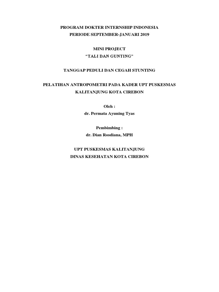 Kader UPT Puskesmas Kalitanjung Kota Cirebon”. Penyusunan laporan didapat dari berbagai