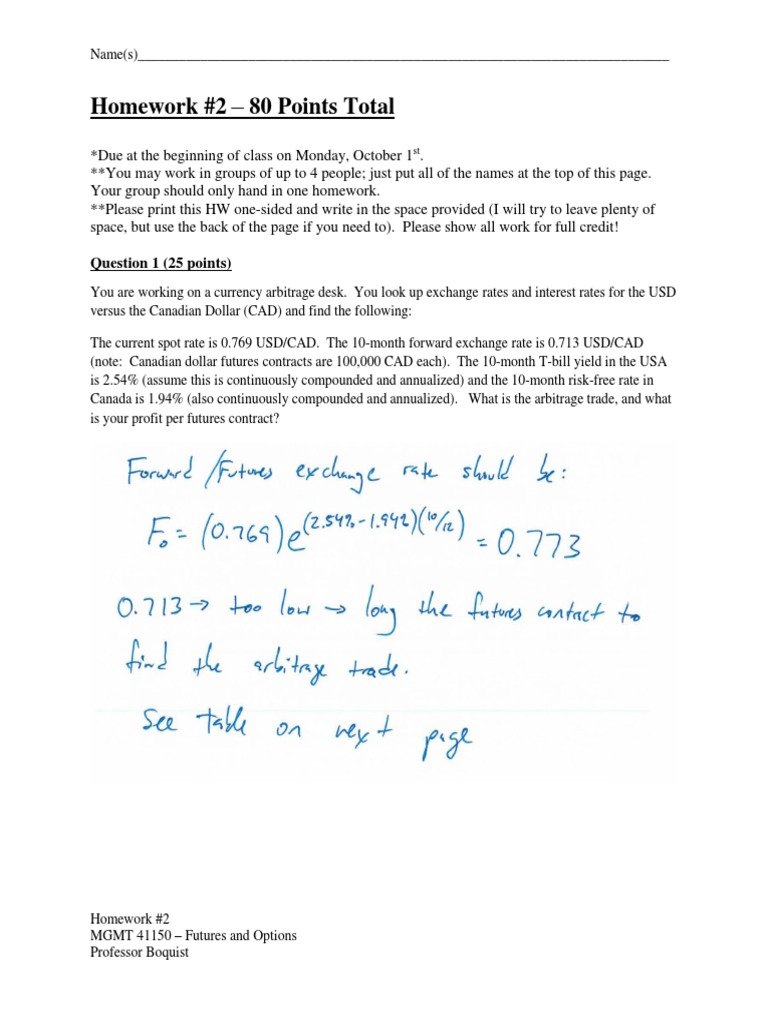 The current spot rate is 0.769 USD/CAD. The 10-month forward exchange rate is 0.713 USD/CAD