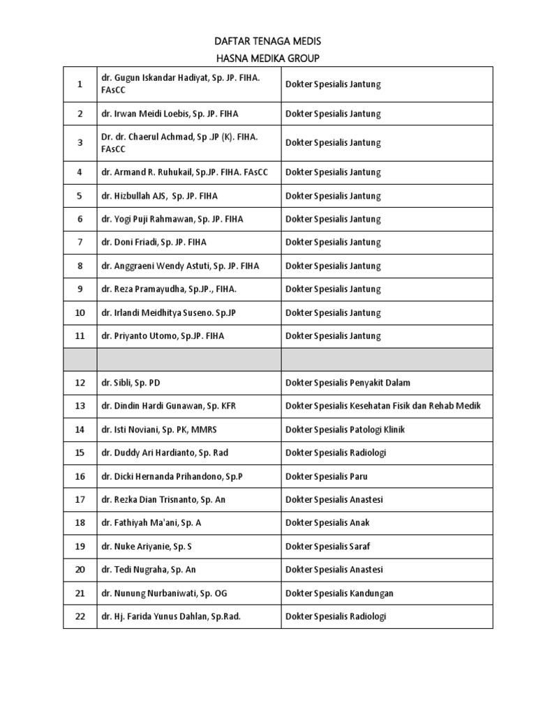 DAFTAR TENAGA MEDIS