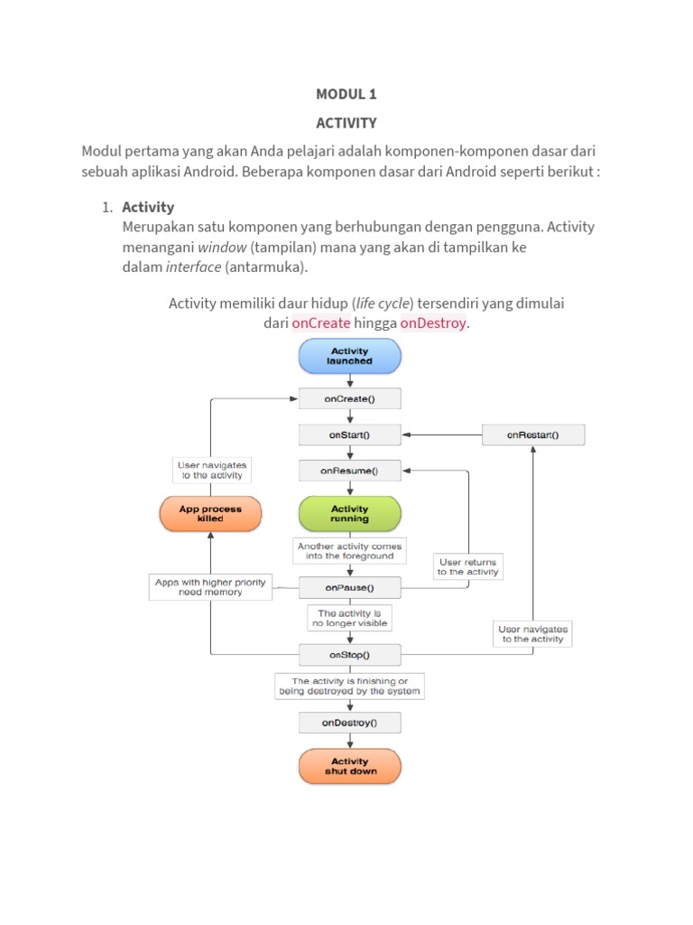perubahan state activity. Callback methods yang ada dapat digunakan untuk