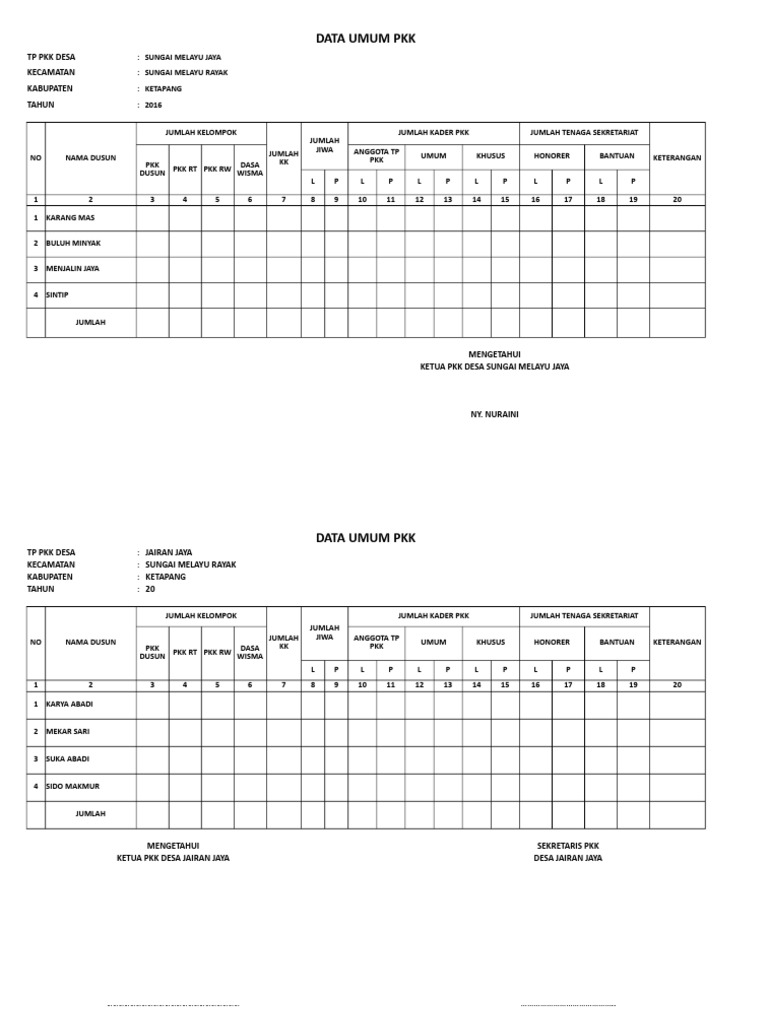 DAFTAR ANGGOTA TP - PKK DAN KADER PKK