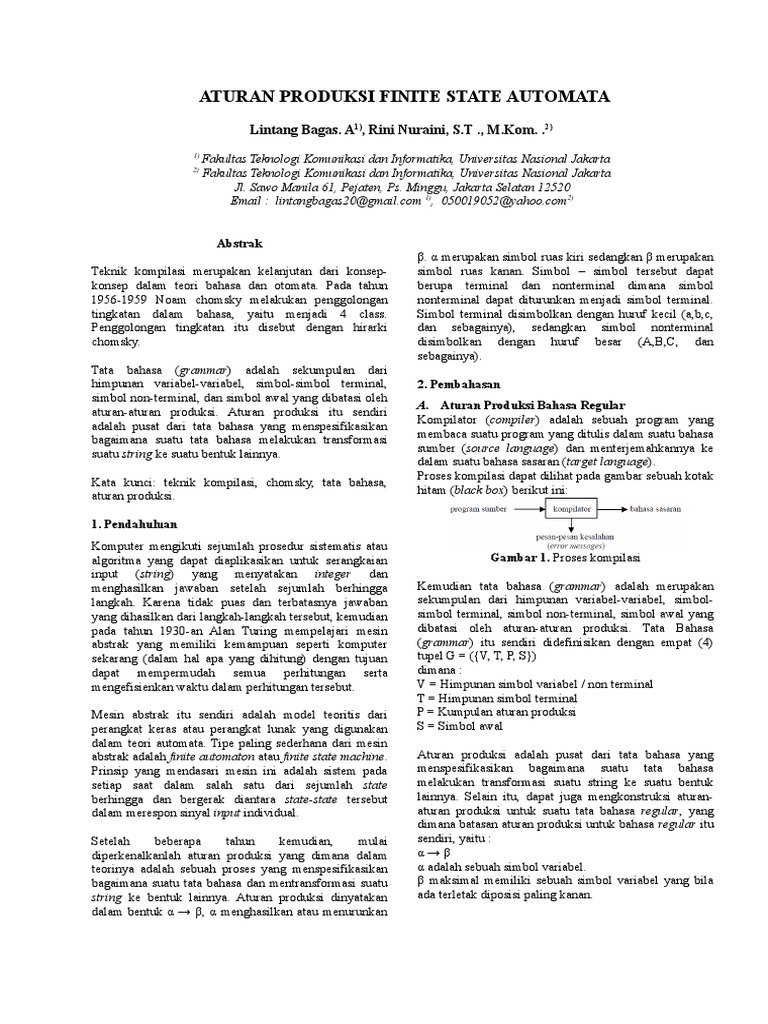 abstrak adalah finite automaton atau finite state machine. Aturan produksi adalah pusat dari tata bahasa yang