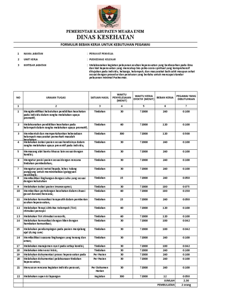 FORMULIR BEBAN KERJA UNTUK KEBUTUHAN PEGAWAI