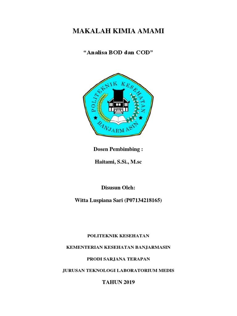 Makalah yang berjudul “Analisa COD dan BOD” ini berisi tentang pengertian COD