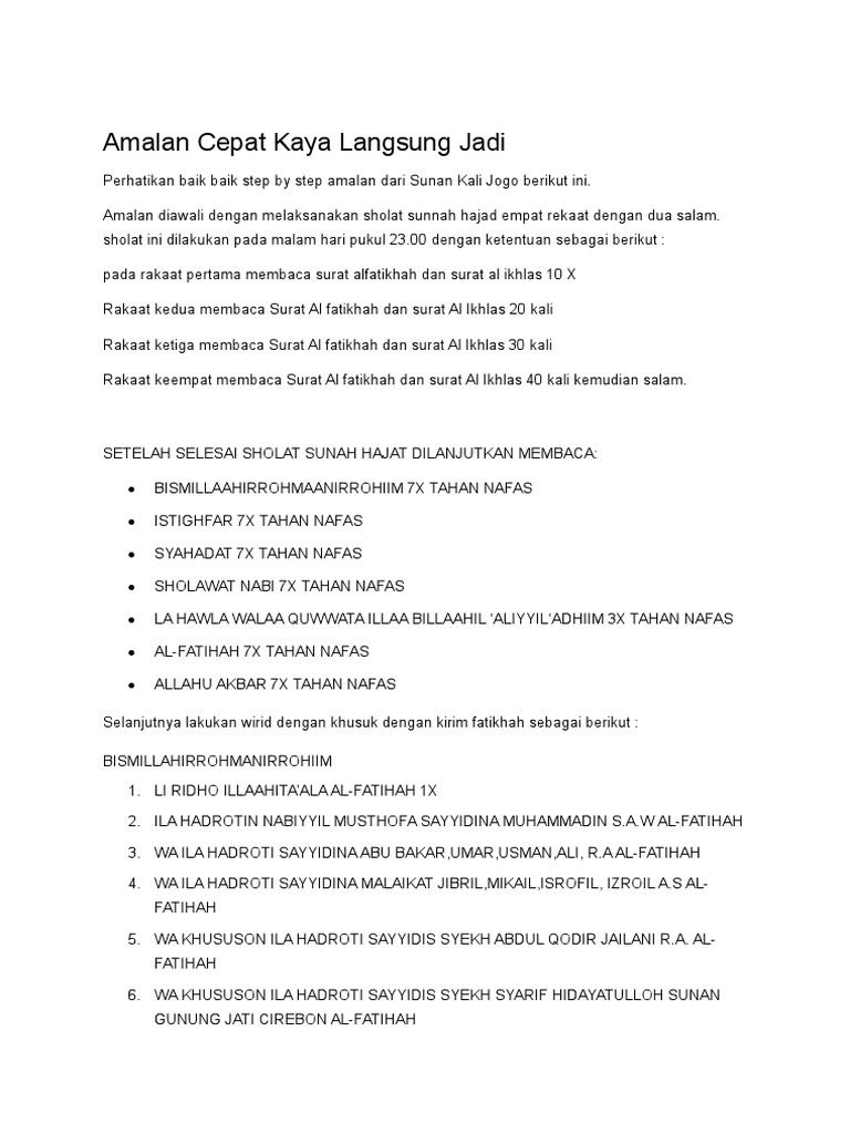 Perhatikan baik baik step by step amalan dari Sunan Kali Jogo berikut ini.