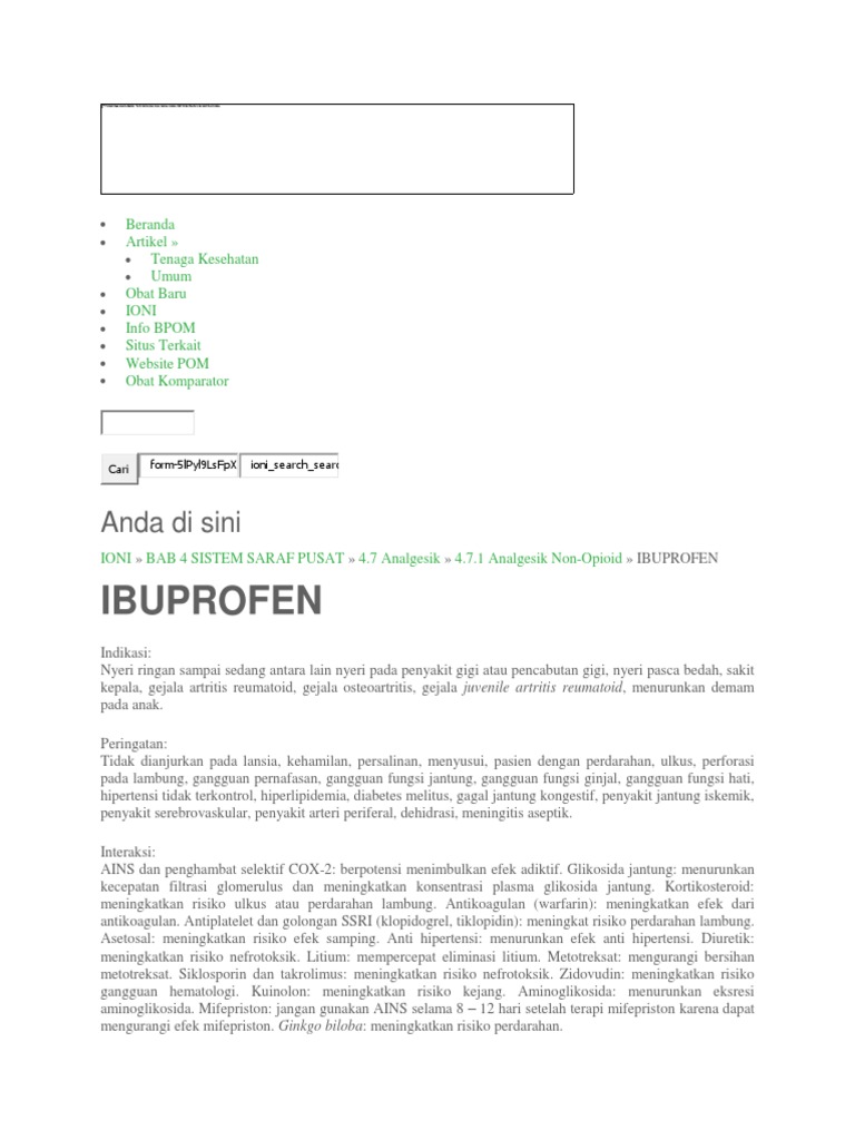 IONI » BAB 4 SISTEM SARAF PUSAT » 4.7 Analgesik » 4.7.1 Analgesik Non-Opioid » IBUPROFEN