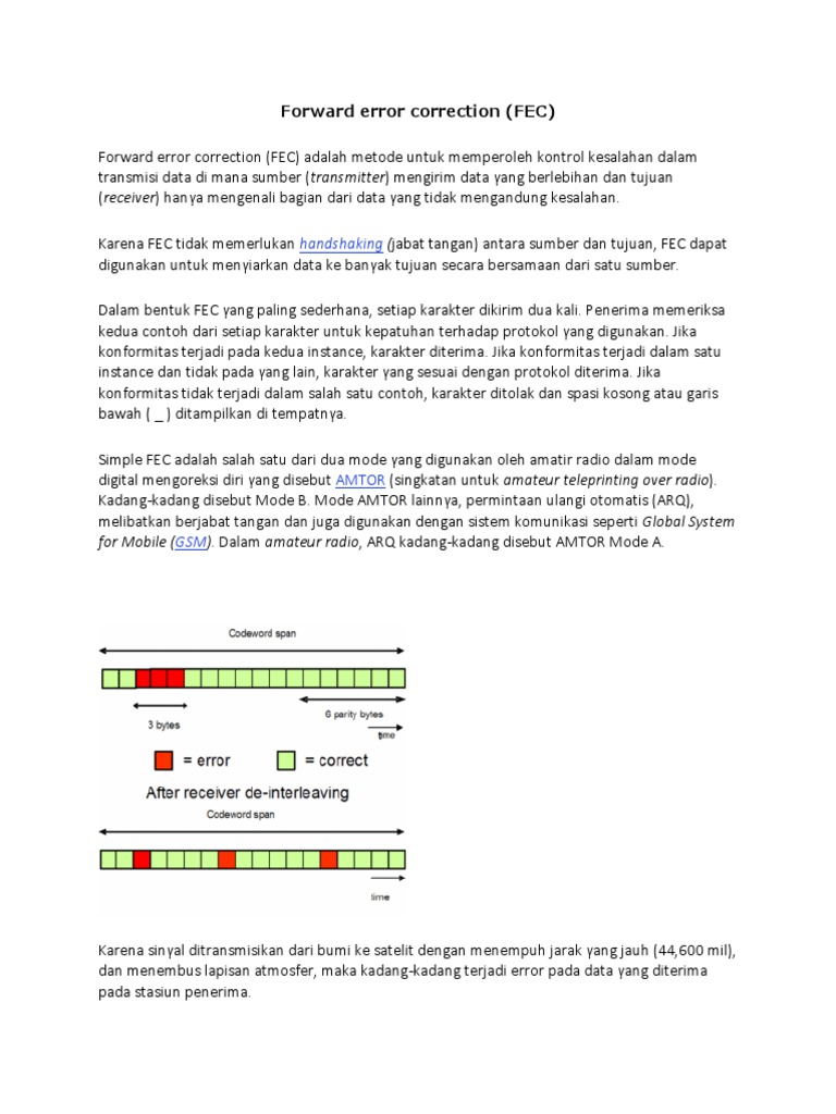 FEC merupakan sebuah teknik yang digunakan oleh penerima untuk memperbaiki error yang