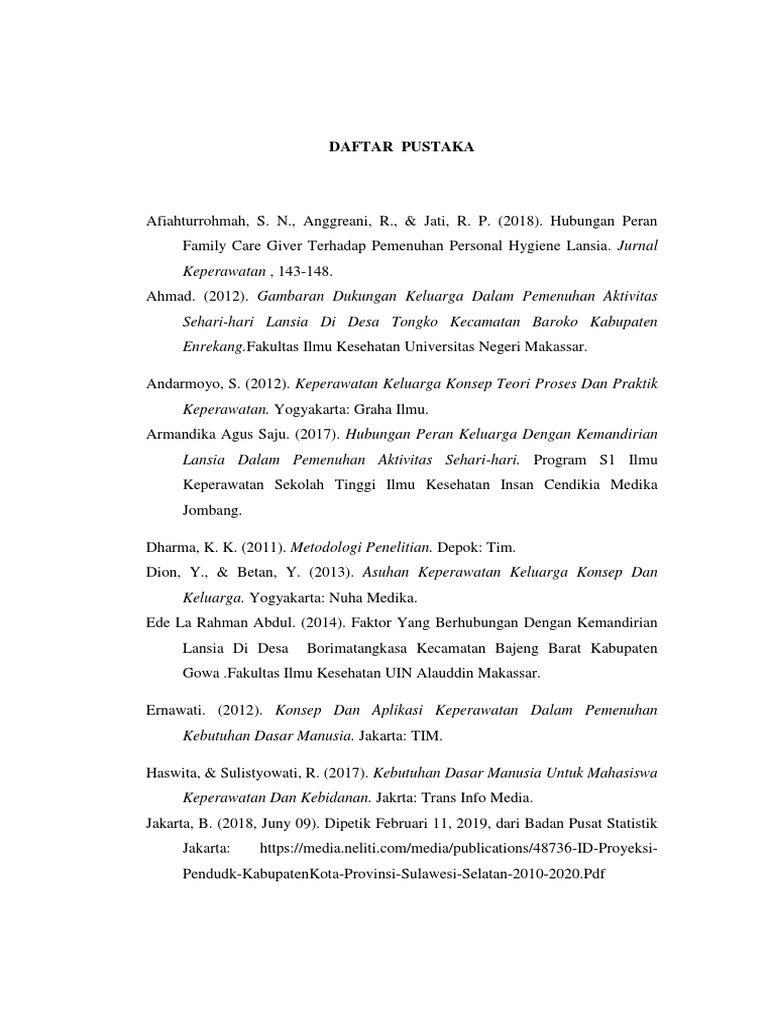 Rohaedi, S., Putri, T. S., & Karimah, A. D. (2016). Tingkat Kemandirian Lansia