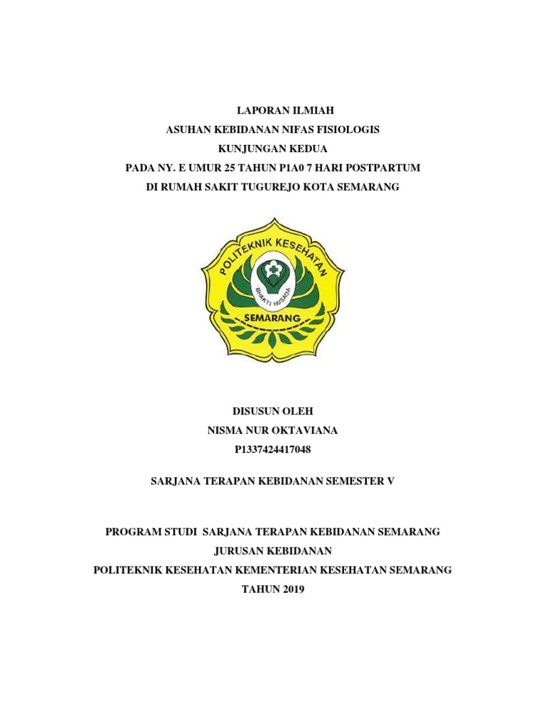 Laporan Asuhan Kebidanan Nifas Fisiologis Kunjungan Kedua Pada Ny. E Umur 25