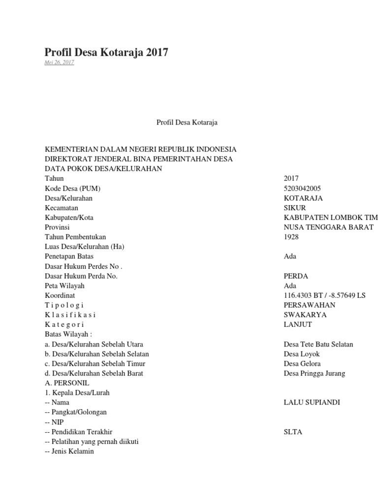 - Sumber Pendapatan dari Perusahaan yang ada di desa/kelurahan (Rp) 0