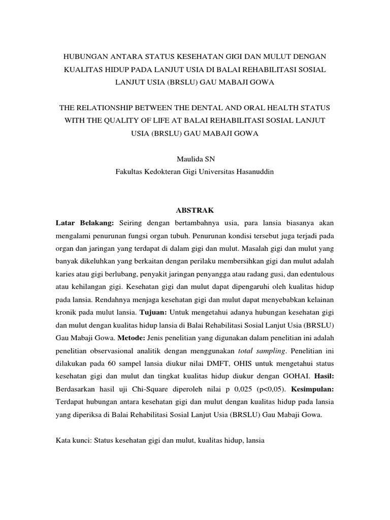 Kata kunci: Status kesehatan gigi dan mulut, kualitas hidup, lansia
