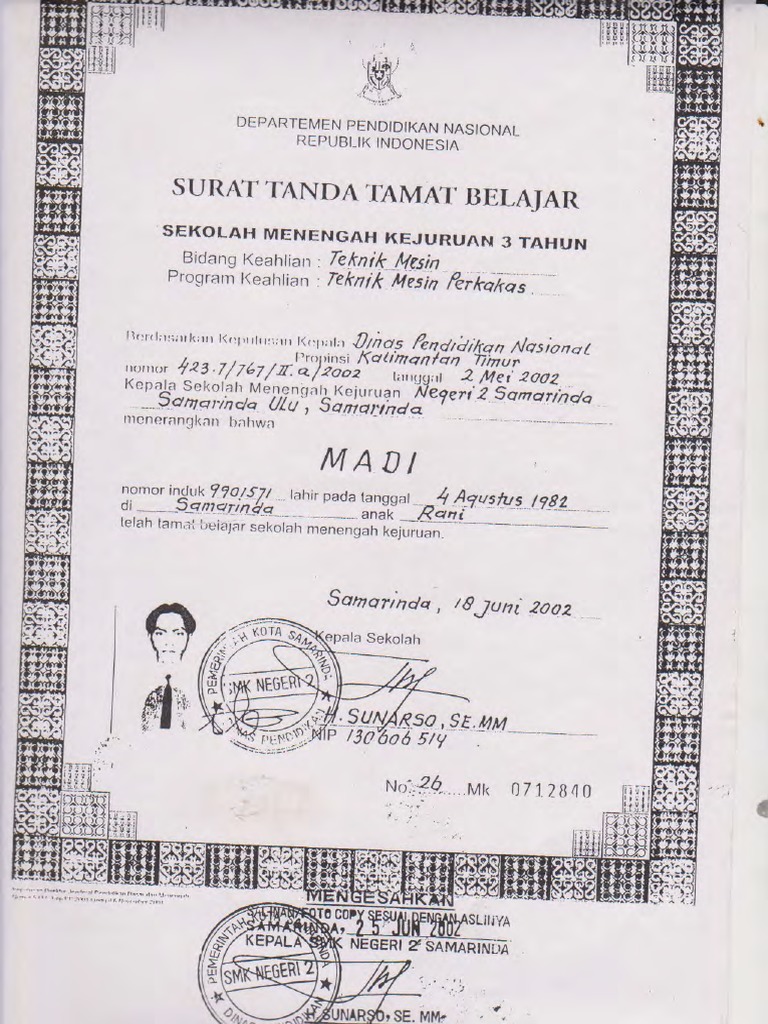 Sertifikat Keterampilan Kerja: Muhammad Sanusi