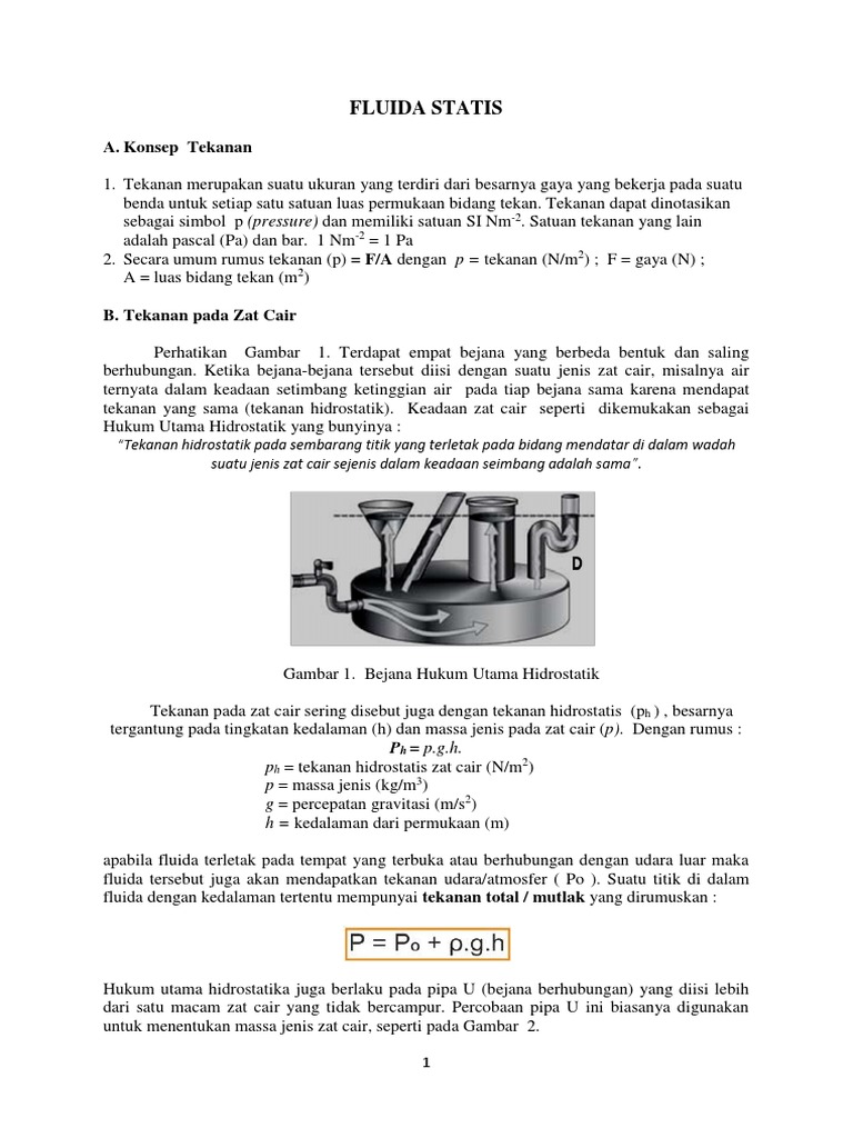 tekanan yang sama (tekanan hidrostatik). Keadaan zat cair seperti dikemukakan sebagai