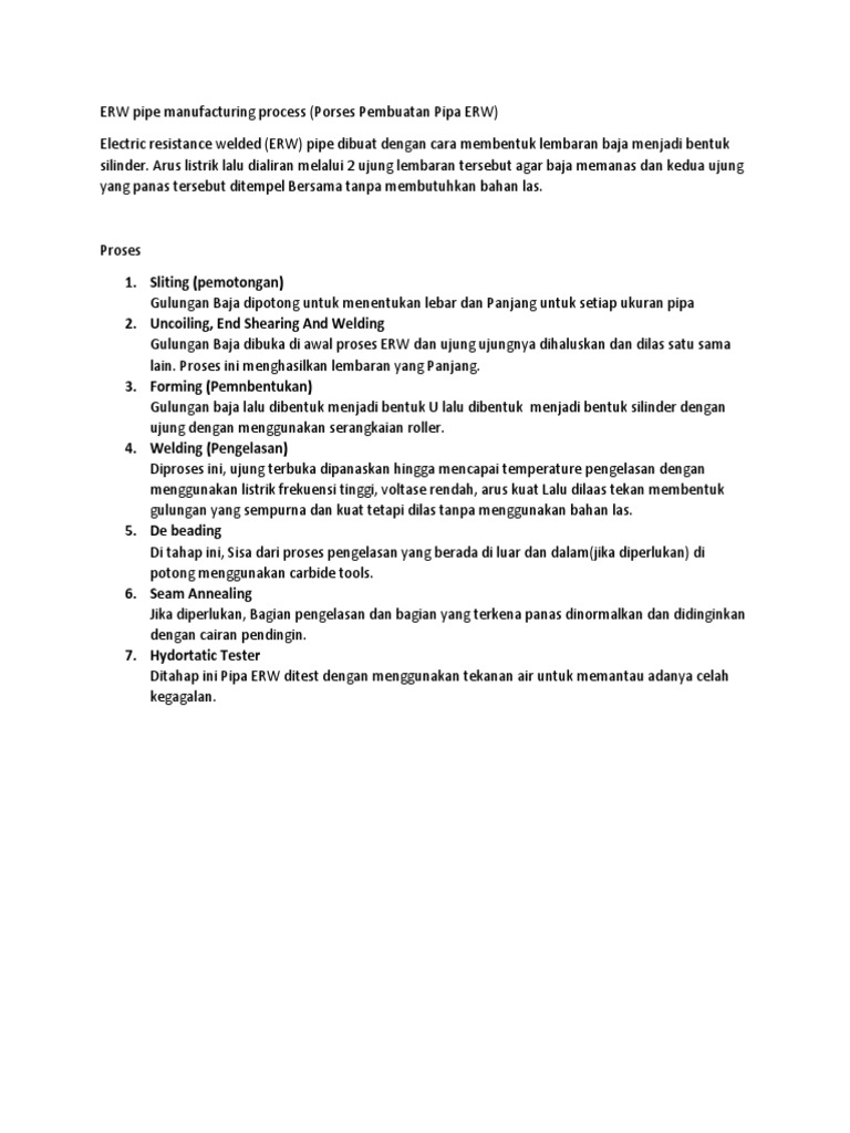 ERW pipe manufacturing process (Porses Pembuatan Pipa ERW)