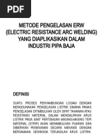 Electric resistance welded (ERW) pipe dibuat dengan cara membentuk lembaran baja menjadi bentuk