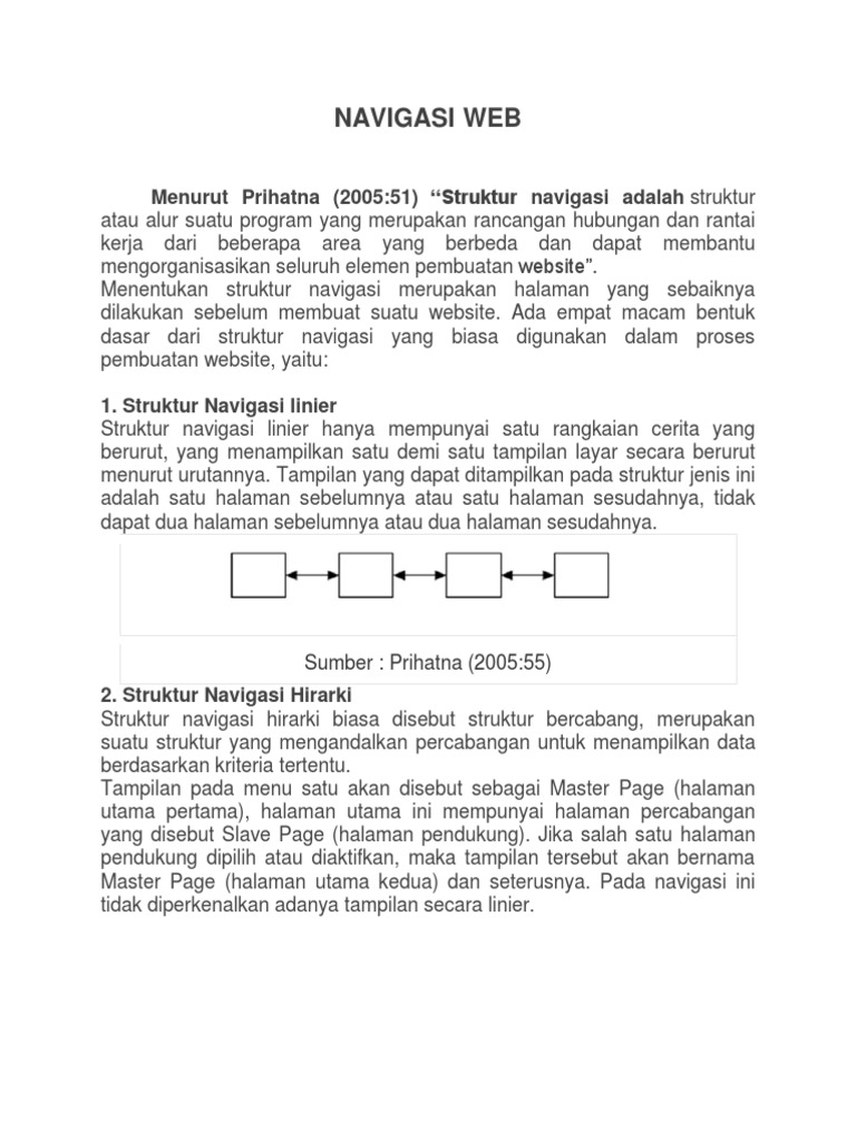 navigasi linier. Pada struktur ini diperkenankan membuat navigasi