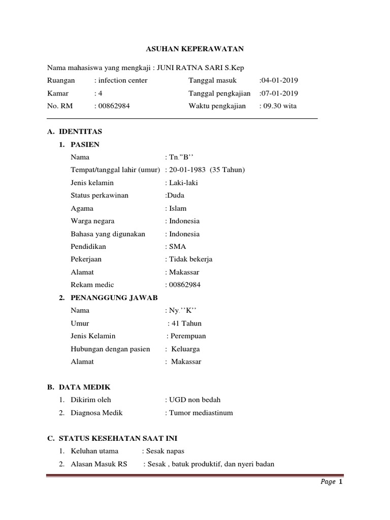 medis Tumor Mediastinum. Pasien tinggal bersama saudaranya.