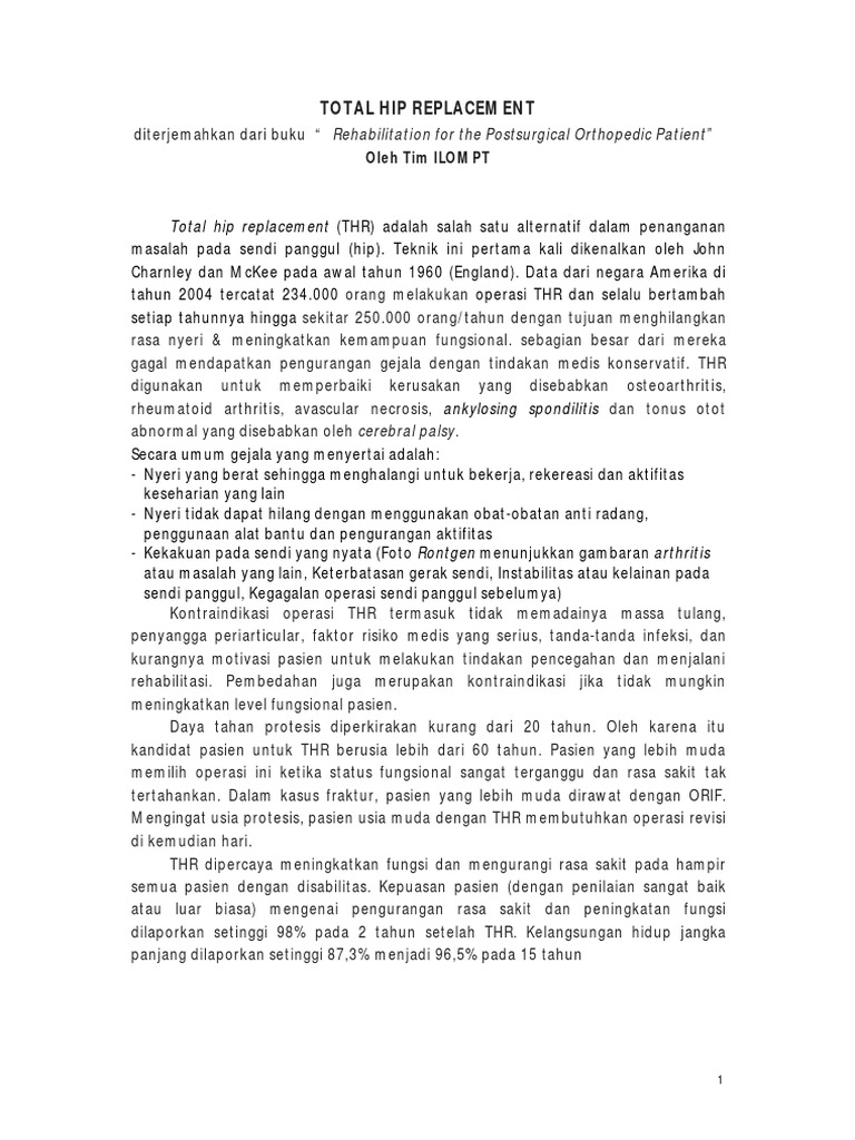 Total hip replacement (THR) adalah salah satu alternatif dalam penanganan