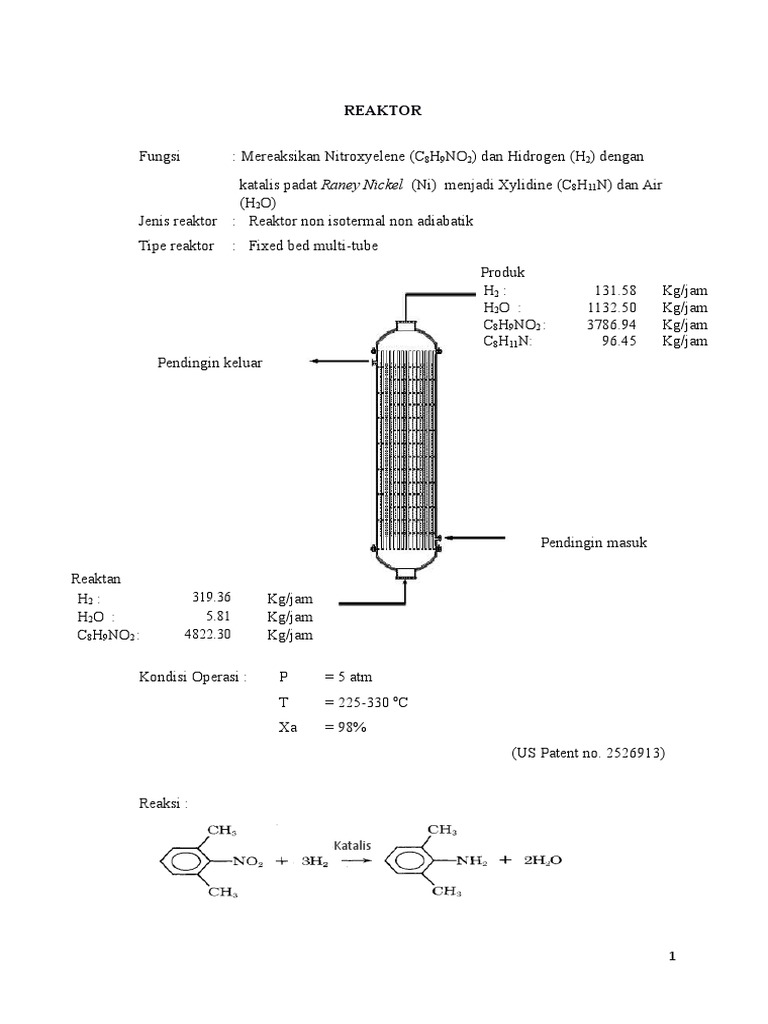 1. Kalor Umpan Masuk Reaktor 1. Kalor hasil reaksi: