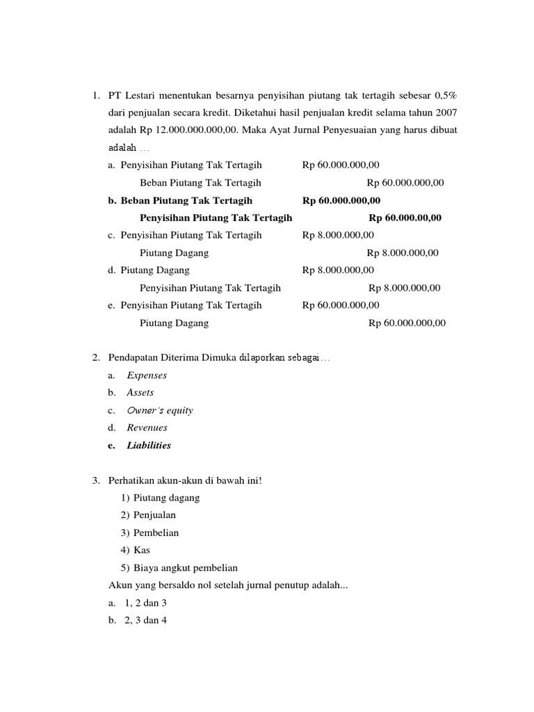PT Lestari menentukan besarnya penyisihan piutang tak tertagih sebesar 0,5%