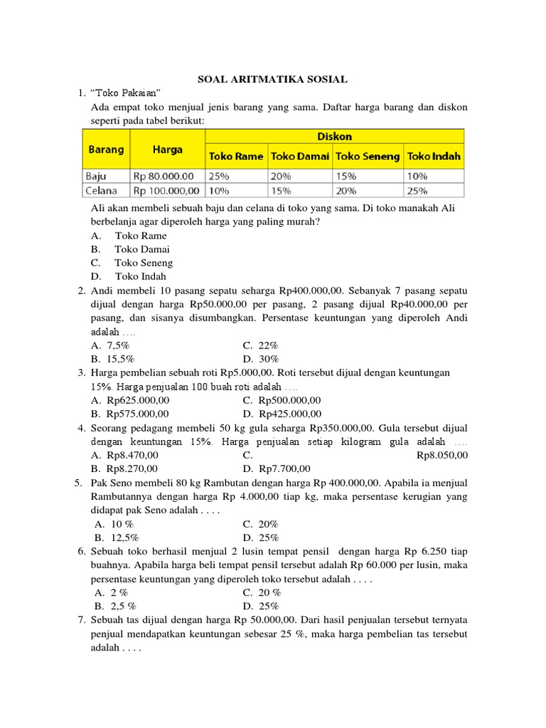 SOAL ARITMATIKA SOSIAL