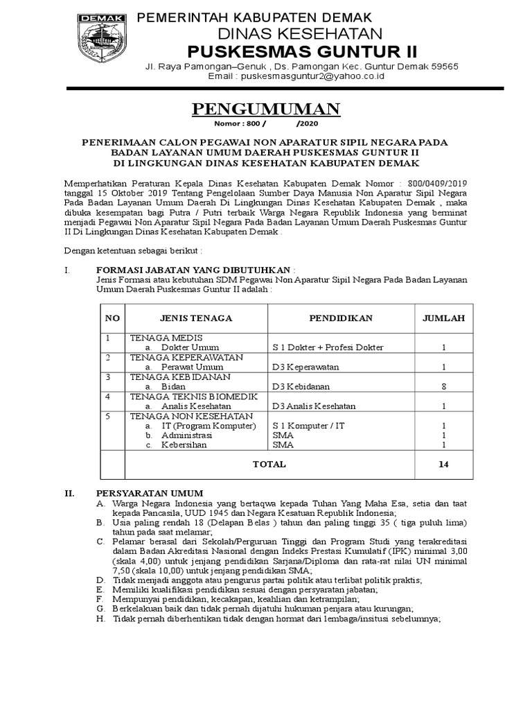 Non ASN BLUD Puskesmas Guntur II di lingkungan Dinas Kesehatan Kabupaten Demak