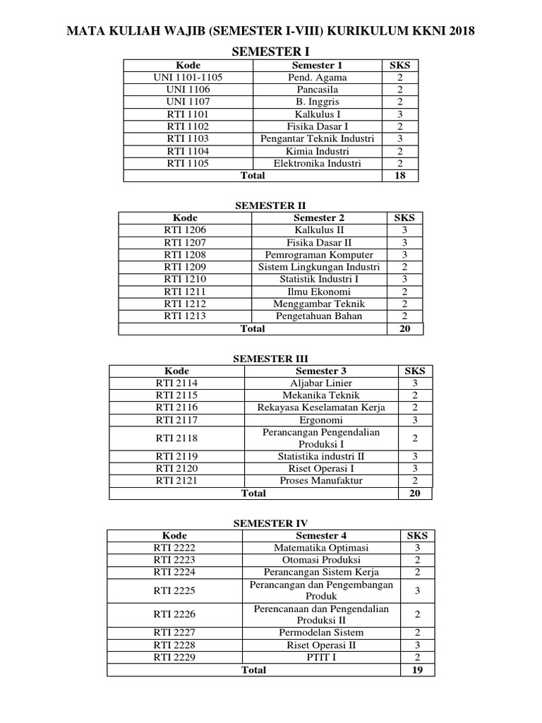 MATA KULIAH WAJIB (SEMESTER I-VIII) KURIKULUM KKNI 2018