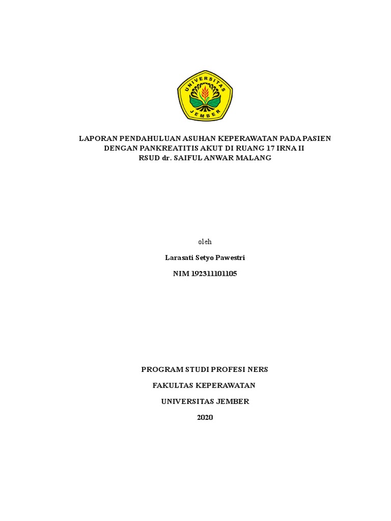 Pankreatitis di Ruang 17 IRNA II RSUD dr. Saiful Anwar Malang telah disetujui