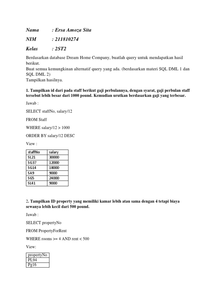 Berdasarkan database Dream Home Company, buatlah query untuk mendapatkan hasil