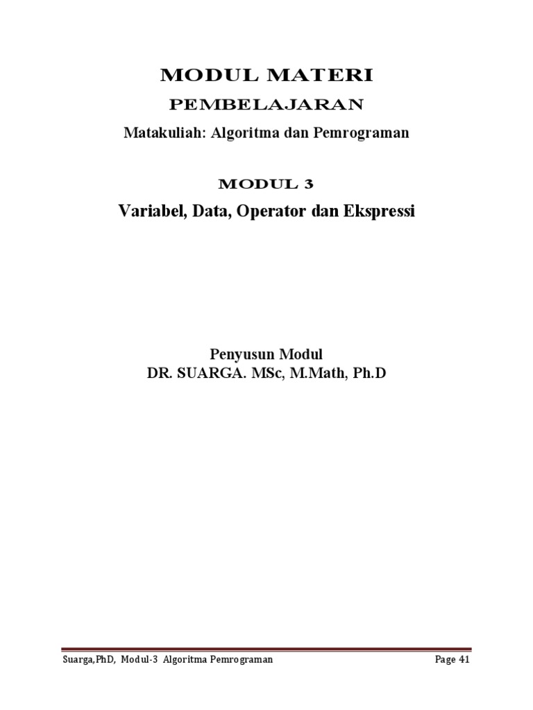 Suarga,PhD, Modul-3 Algoritma Pemrograman Page 41