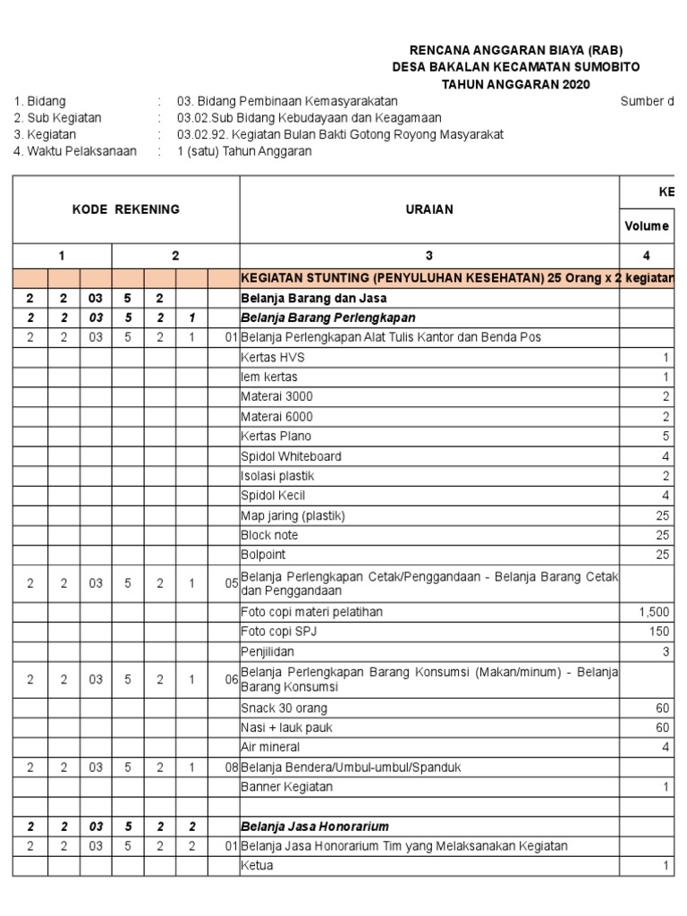 2 2 03 5 2 2 03 Belanja Jasa Honorarium Pembantu Tugas Umum Desa/Operator