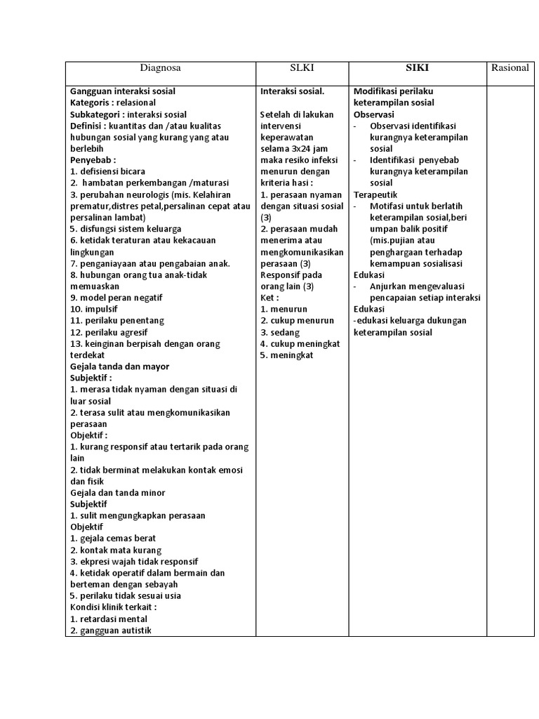 hubungan sosial yang kurang yang atau keperawatan kurangnya keterampilan