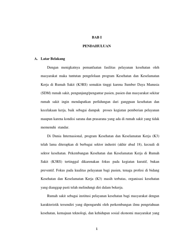 Kesehatan dan Keselamatan Kerja di Rumah Sakit (K3RS) merupakan salah