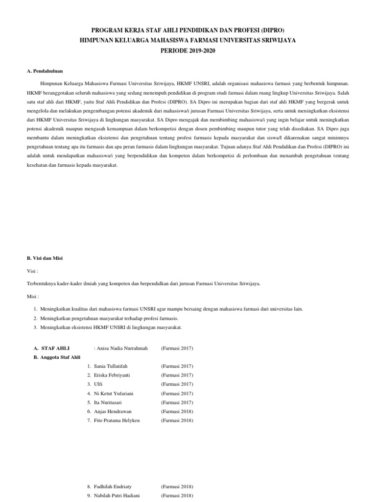 PROGRAM KERJA STAF AHLI PENDIDIKAN DAN PROFESI (DIPRO)