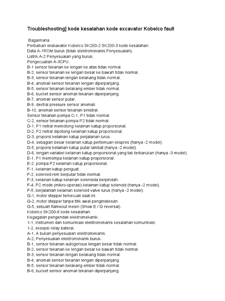 Troubleshooting] kode kesalahan kode excavator Kobelco fault