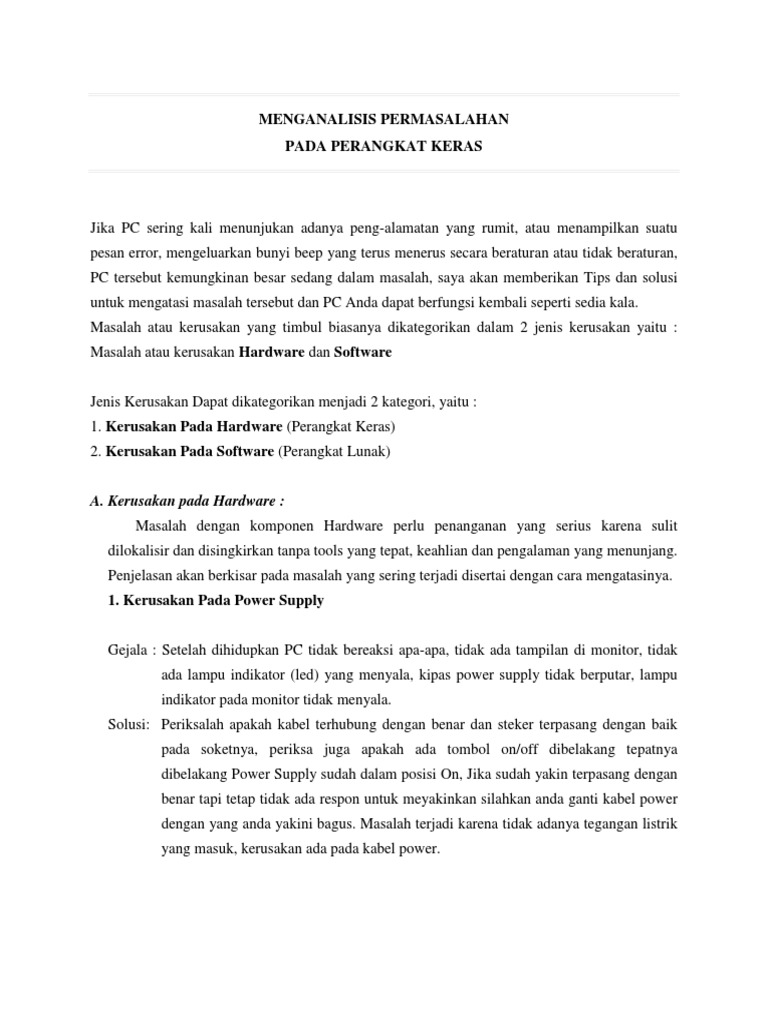 Masalah dengan komponen Hardware perlu penanganan yang serius karena sulit