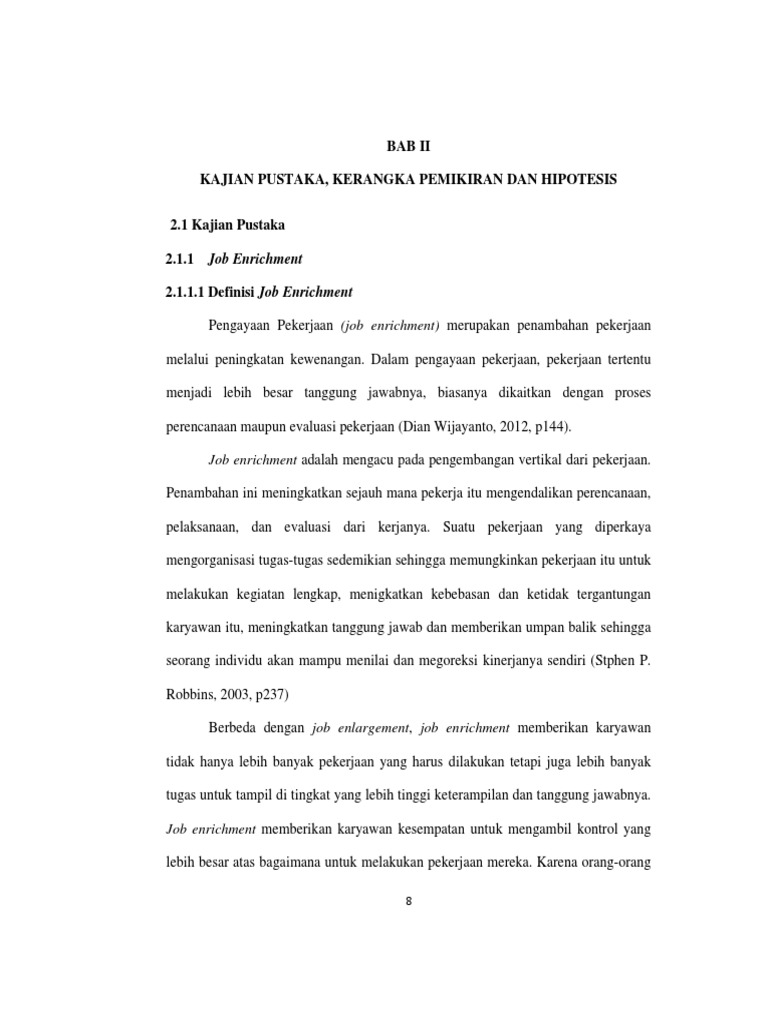 job enrichment, job enlargement, kepuasan dan kinerja kerja karyawan. ada