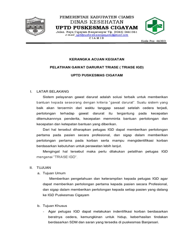 Demikian Kerangka Acuan Kegiatan Pelatihan “Triage IGD