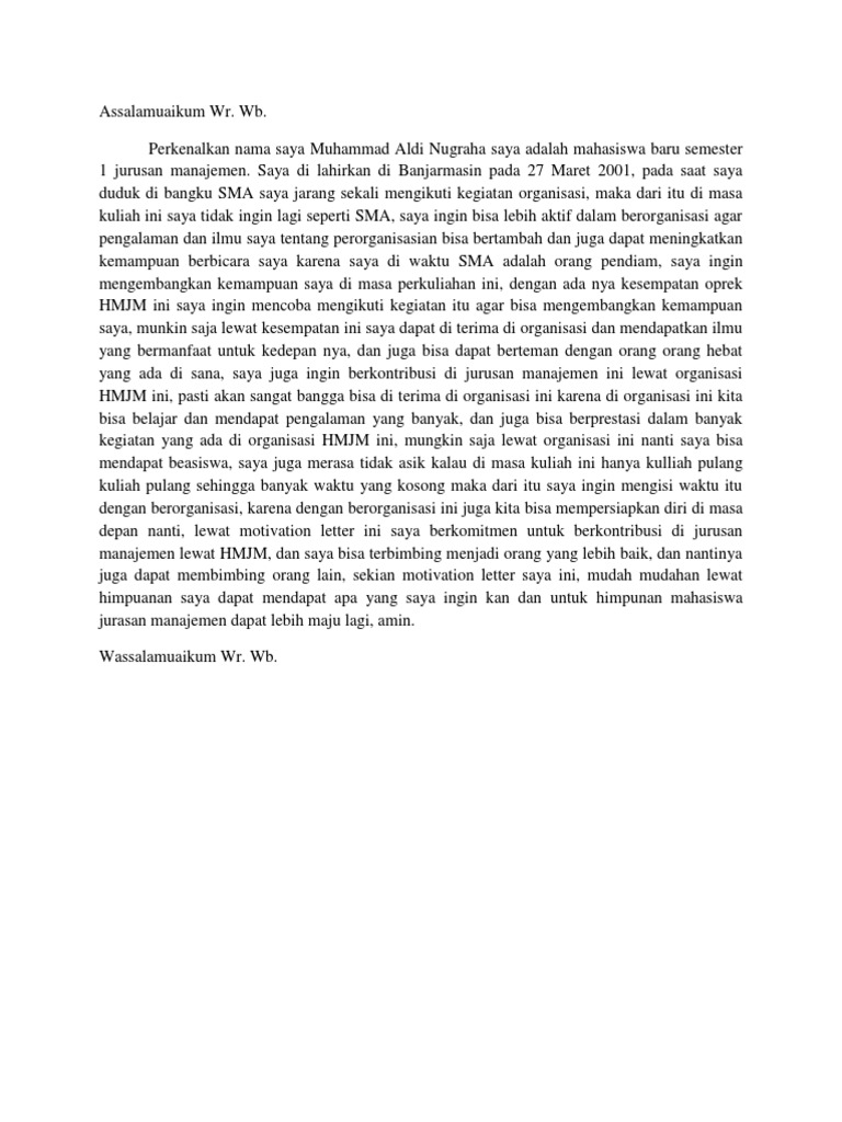 juga dapat membimbing orang lain, sekian motivation letter saya ini, mudah mudahan lewat