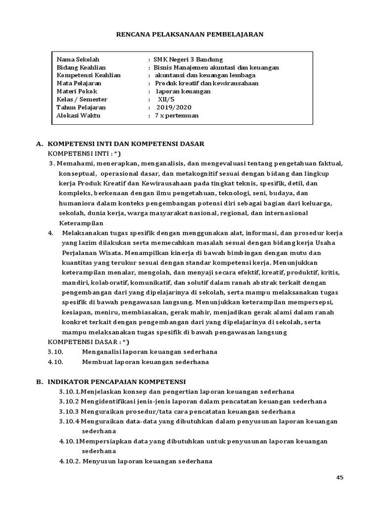 3.10.1. Menjelaskan konsep dan pengertian laporan keuangan sederhana dengan benar