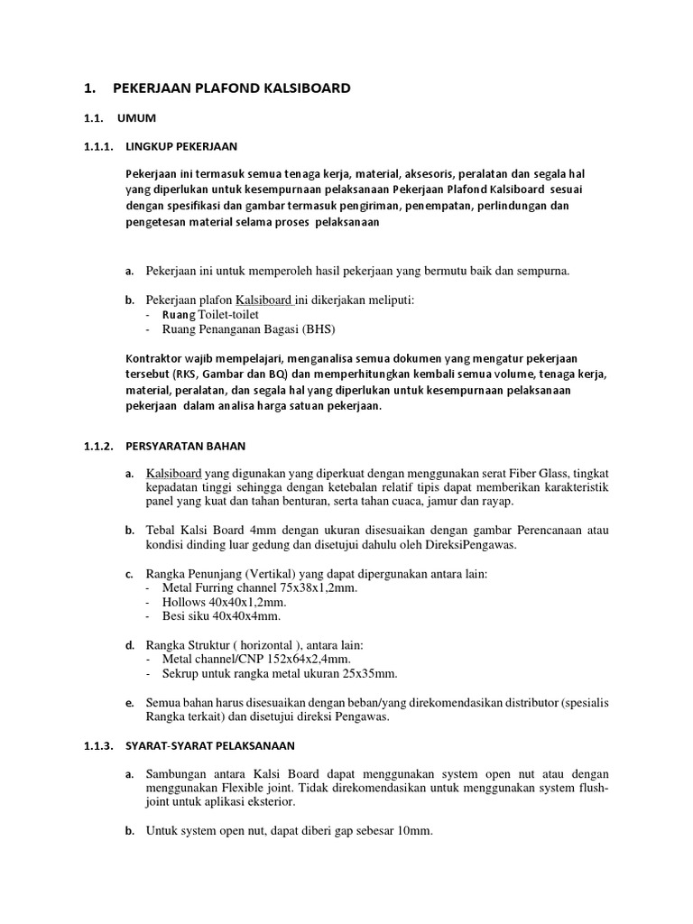 b. Pekerjaan plafon Kalsiboard ini dikerjakan meliputi: