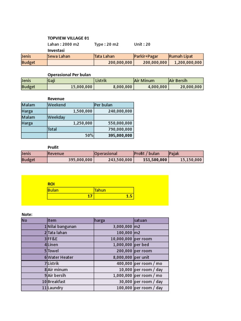 Lahan : 2000 m2 Type : 20 m2 Unit : 20