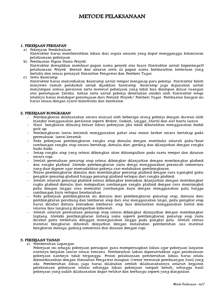 pekerjaan nantinya tidak terganggu. Proses pelaksanaan pembersihan lokasi harus selalu