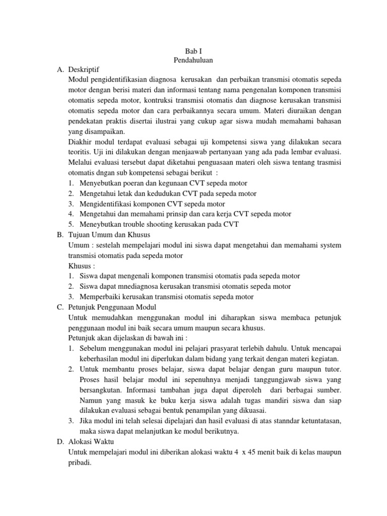 otomatis sepeda motor dan cara perbaikannya secara umum. Materi diuraikan dengan