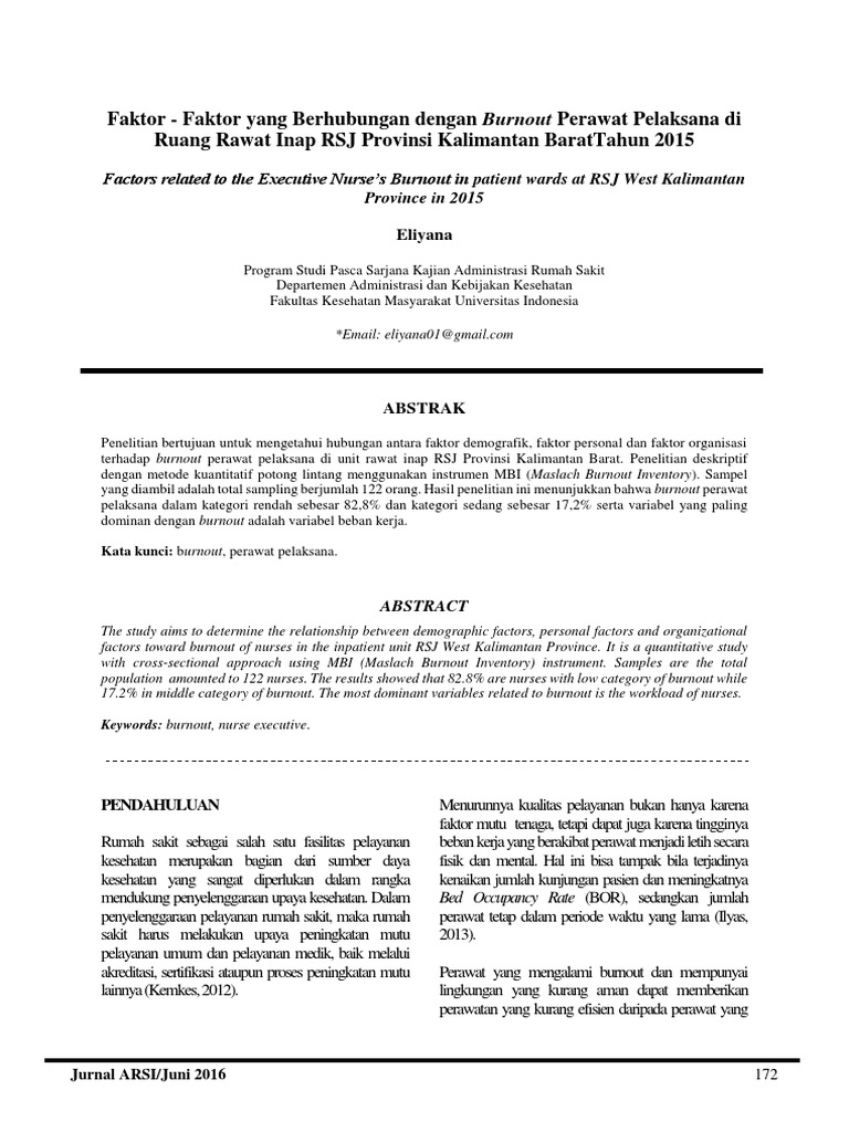2014 RSJ Provinsi Kalimantan Barat). penyalahgunaan obat-obatan. Definisi burnout yang