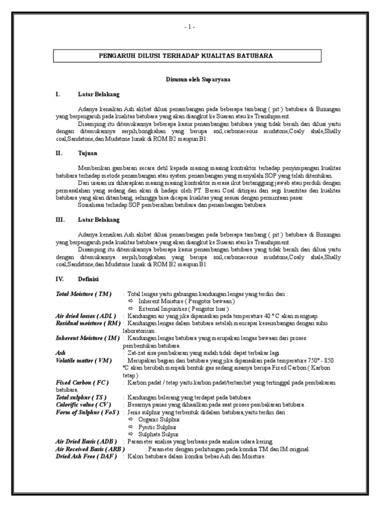 PENGARUH DILUSI TERHADAP KUALITAS BATUBARA