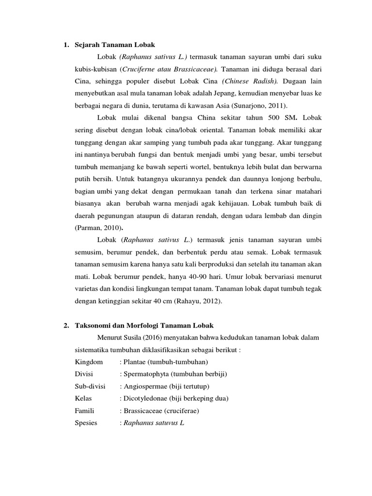 Menurut Susila (2016) menyatakan bahwa kedudukan tanaman lobak dalam