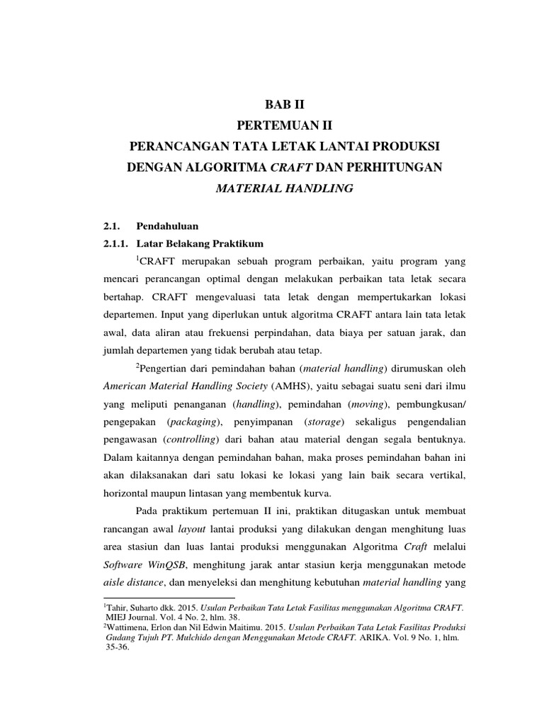 lantai produksi dengan algoritma craft dan perhitungan material handling adalah